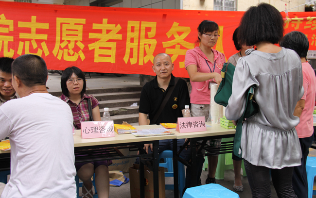 活动分为现场法律咨询和慰问两个项目。其中,纪建斌律师一队在大圩社区广场设点,为前来咨询的群众现场解答法律问题;而郑宇佳律师一队则对大圩社区内的十四名困难党员、困难孤寡老人、刑释解教人员进行探访慰问。