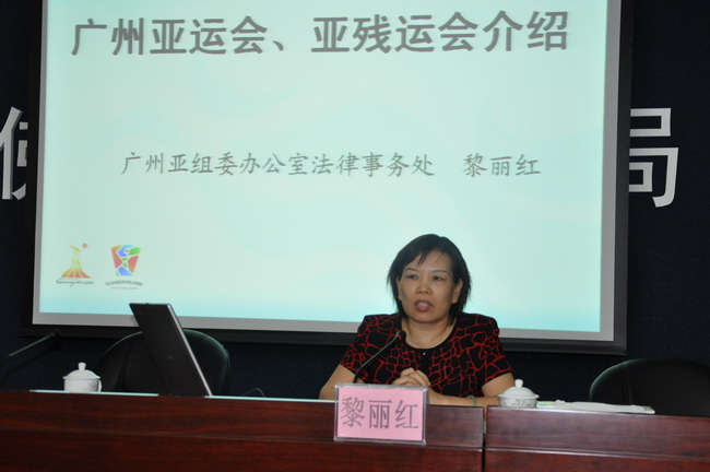 广州亚组委办公室法律事务处处长黎丽红为志愿服务团律师培训