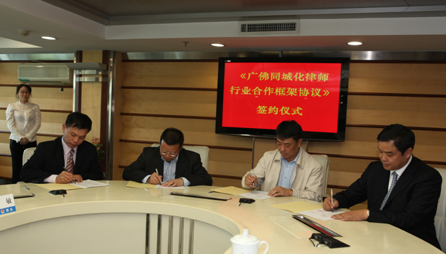 为进一步落实广州、佛山两地同城化建设合作框架协议,推进两地律师行业合作交流,12月3日上午,佛山、广州两市司法局、两市律师协会在广州正式签订广佛同城化律师行业合作框架协议。广州市司法局党委书记、局长吴善积、佛山市司法局党委书记、局长赖紫宁以及两地律师协会会长、秘书长、两市律师管理部门负责人等20多人参加了签约仪式。
