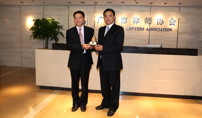 左一:佛山市律师协会会长周荣炽 右一:佛山市司法局局长赖紫宁