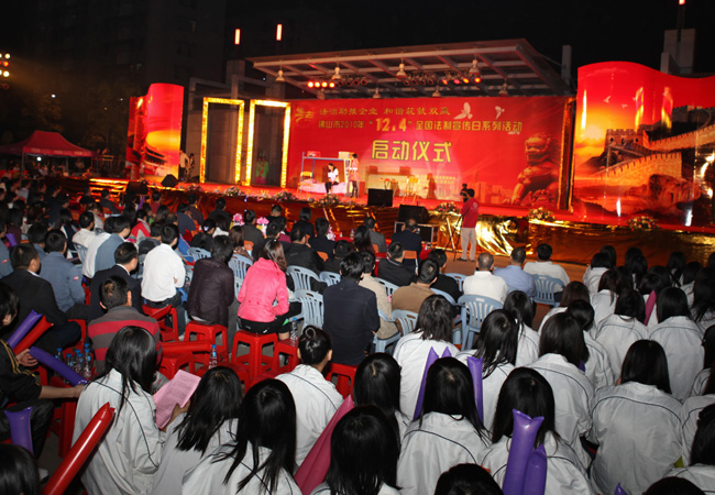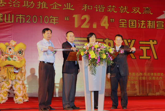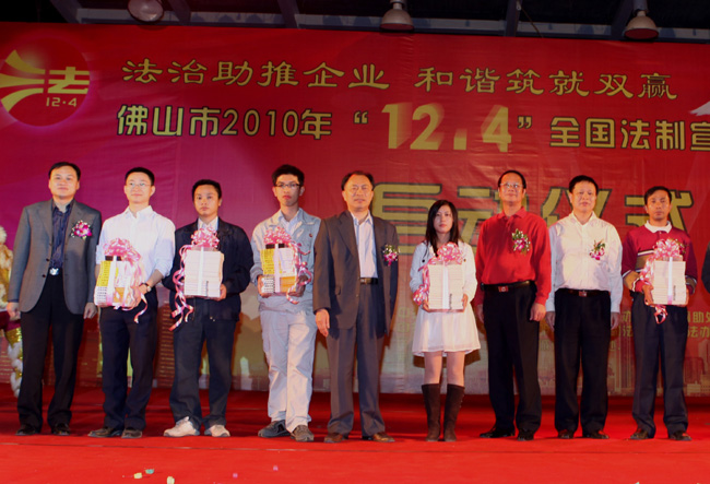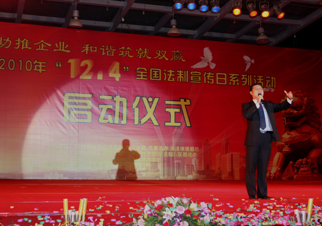 这次活动的主题是“法治助推企业,和谐筑就双赢”,旨在促进企业依法管理、依法经营,提高企业经营管理人员和员工依法维权的意识和能力。高明区数家企业的400多名企业员工参加了法制宣传日系列活动的启动仪式。启动仪式上,市普及法律常识领导小组办公室主任、市司法局副局长杨欢贵及我会副会长曹建宇等领导还向企业代表赠送了法律书籍和企业普法DVD光盘。现场还进行了小品《工伤之后》,独唱《我和我的祖国》(表演者是南天明律师事务所郑宇佳律师),歌舞《好运来》等精彩文艺表演。