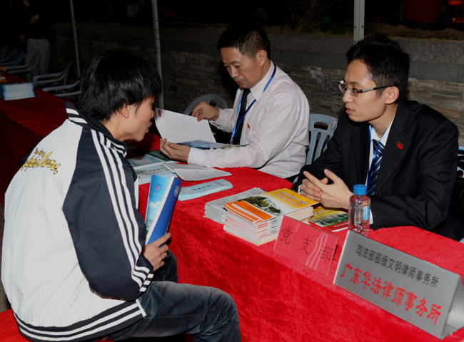 启动仪式还设有法律咨询、法律援助等服务。华法律师所党支部和华法(高明)律师所党支部由行政部部长龙小蓓、党支部专职副书记霍彦冬以及高明分所的律师党员组成律师党员创先争优服务岗,现场为群众提供免费法律咨询,现场解答驻地群众的法律问题,受到群众的热烈欢迎。