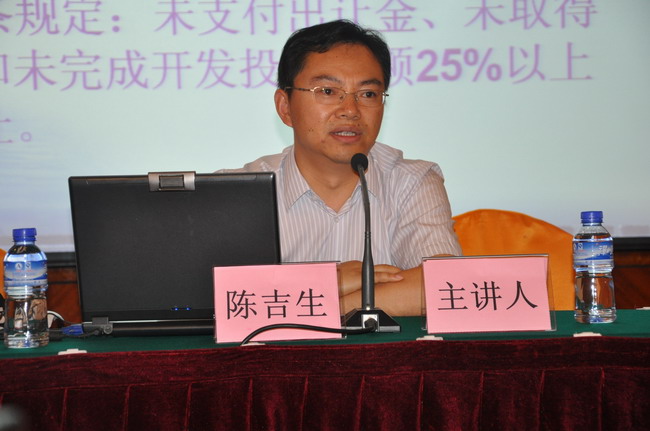 为帮助律师深入理解《城市房地产管理法》、《合同法》、《物权法》等条文的法律效力,了解、探讨房地产领域出现的热点法律问题,我会房地产法律专业委员会特邀请省高院民一庭副庭长陈吉生为广大律师讲授“房地产审判实务”。房地产法律专业委员会主任委员杨小菁主持了本次讲座,分管会长钟坚、委员会副主任委员陈志坤、陈常德,市律协秘书长胡玉明,及400余名律师参加了讲座。